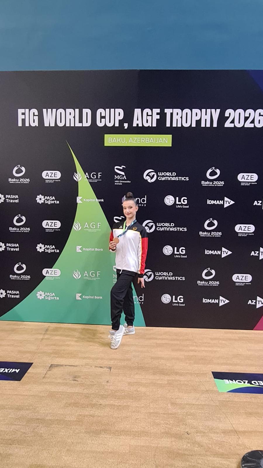Großer Erfolg für den TSV Gersthofen: Die Gymnastin Anna-Lena Schmid hat sich beim internationalen FIG-Turnier in Baku (Aserbaidschan) eine Medaille gesichert. In einem starken Teilnehmerfeld der Juniorinnen überzeugte sie im Finale mit dem Band und gewann sensationell die Bronzemedaille.